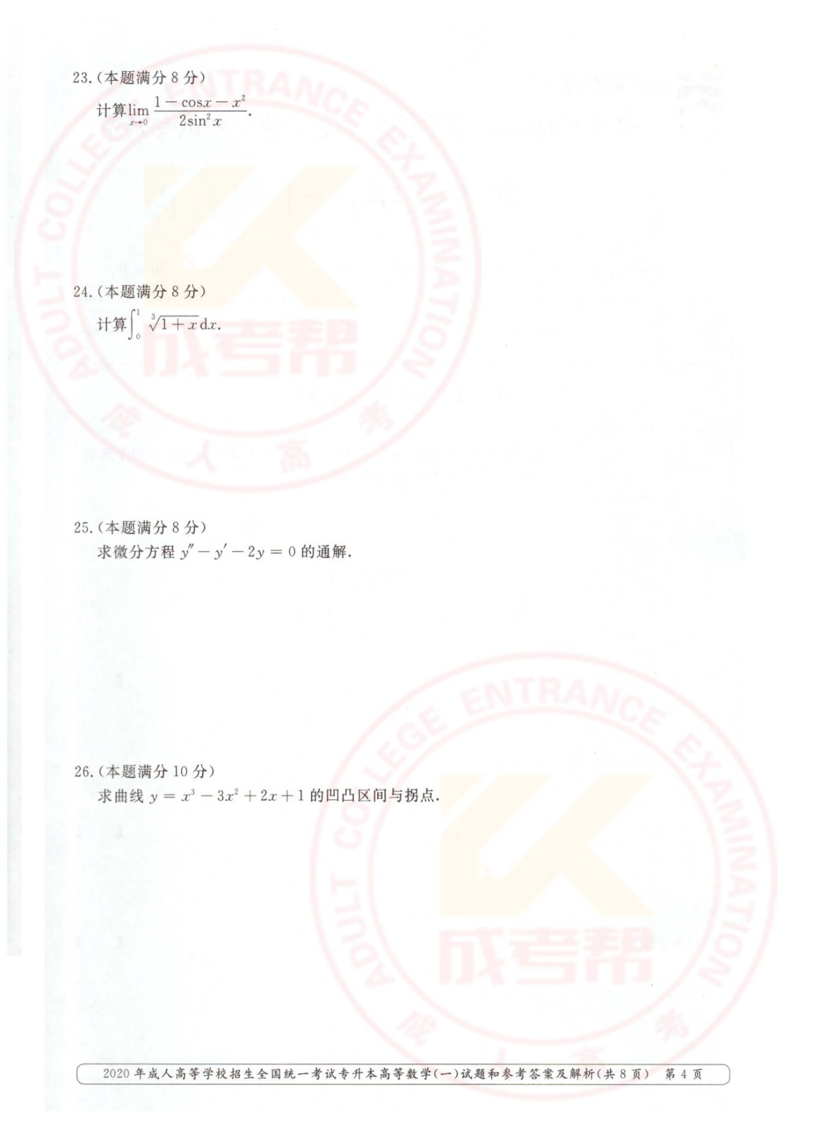 2020年湖南成人高考专升本高数(一)考试真题及答案